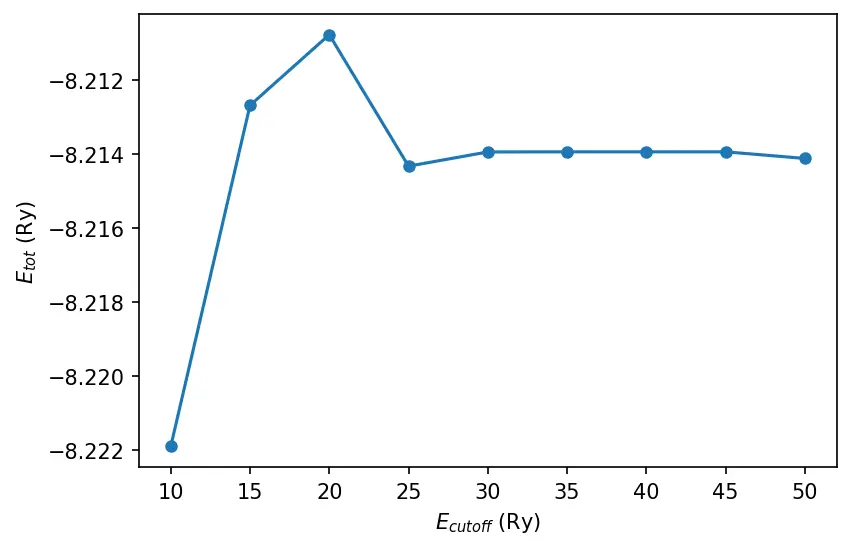 The script will print out total energy for each cutoff energy used. We can plot the result:
